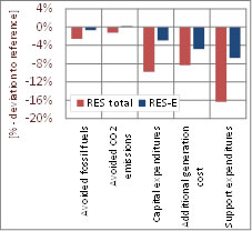 Figure 2b - 3. Indicators on cost/expenditures and benefits of new RES(-E) installations (2021 to 2030), expressing yearly average (2021 to 2030) monetary values at EU-27 level in absolute terms (left) and the change compared to reference (for the assessed policy pathway 2b (FIP medium))